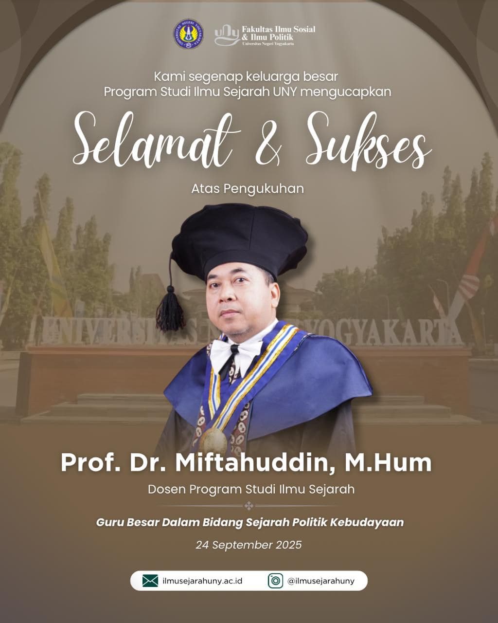 Dengan dikukuhkannya Prof. Miftahuddin sebagai guru besar, UNY kini semakin memperkaya khazanah keilmuan sejarah, sekaligus menegaskan komitmennya dalam mengembangkan kajian akademik yang berakar pada nilai-nilai kebudayaan dan kebangsaan Indonesia.